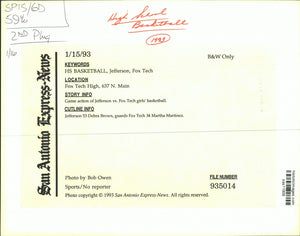 High School Basketball Jefferson, Fox Tech High, 637 N. Main. Jefferson 53 Debra Brown, guards Fox Tech 34 Martha Martinez.