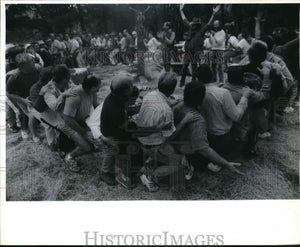 1992 Press Photo Circle sits on each others' laps at Wildman gathering in Texas