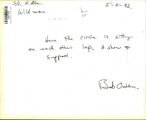 Wildman - Here the circle is sitting on each other's lap, a show of support