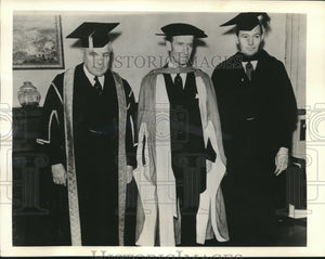 Dr. Lewis Douglas, former director of the United States Budget in the early days of the Roosevelt-Administration, is shown (right) during his installation as Principal of University here.Also in the group are Sir Edward Beatty (left), Chancellor of McGill,and Lord Tweedsmuth, Governor General of Canada,one of the distinguished visitors.