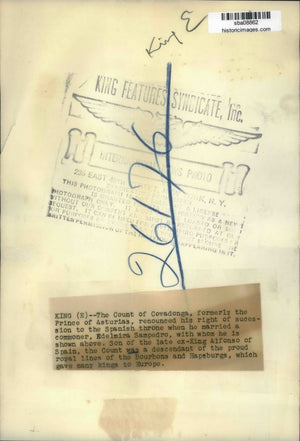 Press Photo Count of Covadonga who renounced throne to marry Edelmira Sampedro