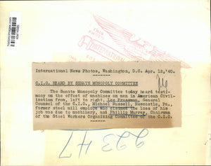 1940 Press Photo C.I.O Officials heard testimony by Senate Monopoly Committee