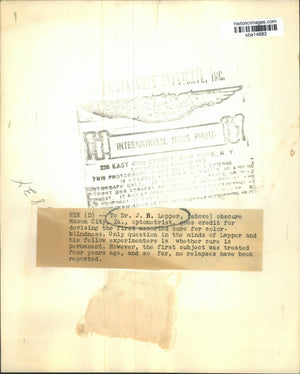 To Dr JGH Lepper obscure Mason City Ia optometrist goes credit for devising first asserted cure for color blindness Only question in minds of Lepper ans fellow experimenters iswhether cure is permanent However the 1st subject was treated 4 years ago and so far no relapses have been reported