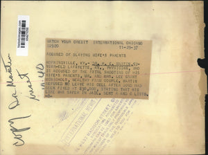Dr.H.E. Martin 52 year old Lafayette Ky Physician who is accused of the Fatal Shooting of his Wife's Parents Mr and Mrs Lee Grant McNichols.wealthy Farm Couple. Martin refused to leave his cell after bond had been fixed at $30,000 stating that his life was safer in Jail.