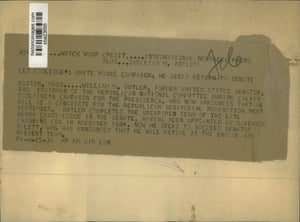 William M Butler former United States Senator Chairman of the Republican National Committee during Calvin Coolidges campaign for the Presidency who now announces that he will be a candidate for the Republican Senatorial Nomination next September. Butler completed the unexpired term of the late Henry Cabot Lodge in the Senate having been appointed by Governor Channing Cox in November 1924. Now he seeks to succeed Senator Gilett who has announced that he will retire at the end of his present term.