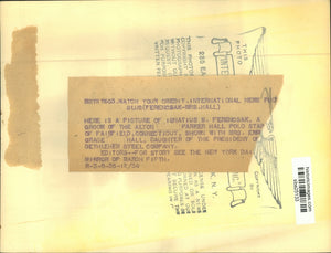 Here is a picture of Ignatius S. Ferencsak, a groom of the Alton Parker Hall polo star of Fairfield, Connecticut, shown with Mrs. Emma Grace Hall, daughter of the president of Bethlehem Steel Company.