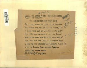 The eldest still is fighting in Africa, the 2nd was killed and the third, Lt. Richard Wood sat by Lord Halifax's side, and explained that the Stuka bomb which cost him both his legs would have cost him his life if it hadn't been a dud. He was wounded fighting with the 8th Army against Rommel.