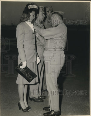 1943 Press Photo Mrs Ruth W Gilliland gets husbands Distinguished Flying Cross