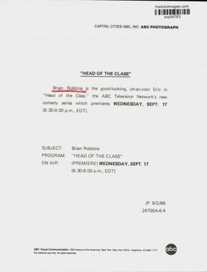 Brian Robbins is the good-looking, oh-so-cool Eric in "Head of the Class," the ABC Television Network's new comedy series which premieres Wednesday, Sept. 17 (8:30-9:00 p.m., EDT).