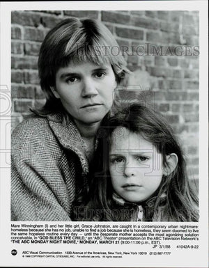 Mare Winningham (l) and her little girt, Grace Johnston, are caught in a contemporary urban nightmare: homeless because she has no job, unable to find a job because she is homeless, they seem doomed to live the same hopeless routine every day - until the desperate mother accepts the most agonizing solution conceivable, in "God Bless The Child," an "ABC Theater" presentation on the ABC Television Network's "The ABC Monday Night Movie," Monday, March 21 (9:00-11:00 p.m., EST).