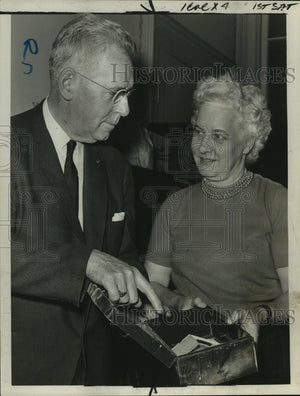 1964 Press Photo Albany, NY attorney examines strongbox forced open in burglary