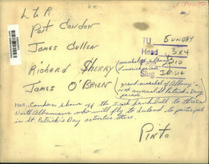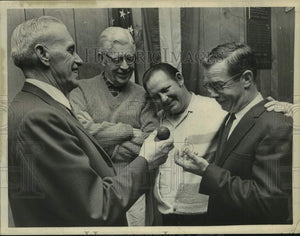 St Patrick's Day. Pat Condon shows off the Irish handball to North Albany, Albany, New York men who will fly to Ireland to participate in the St Patrick's Day activities there. Left to right: Pat Condon, James Cullen, Richard Sherry and James O'Brien