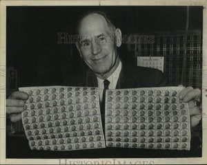 1968 Press Photo John Schumaker with sheets of stamps in Albany, New York