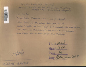 Thacher Park, Albany, New York - Annual picnic of the Columbian Republican League & Auxiliary (Albany County chapter) - Miss Joan Parago, Colonie, Guest; Miss Patricia Mercier, Rensselaer, Guest; Hames Martin, Colonie, GOP Candidate for State Senator; John Meader, Menands, GOP Candidate for Congress; Miss Mary Smith, Albany, Club member