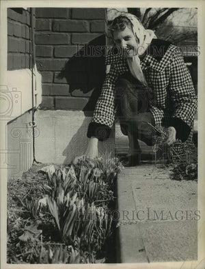 1963 Press Photo Mrs. Fred Metzger pulls weeds in her Albany, New York garden