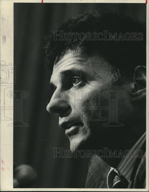 1978 Press Photo Ralph Nader speaks to the press in Albany, New York - tup01924