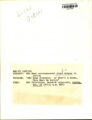 News Correspondent Lloyd Dobyns in Zurich; NBC News Presents: If That's a Gnome, This Must Be Zurich", December 16