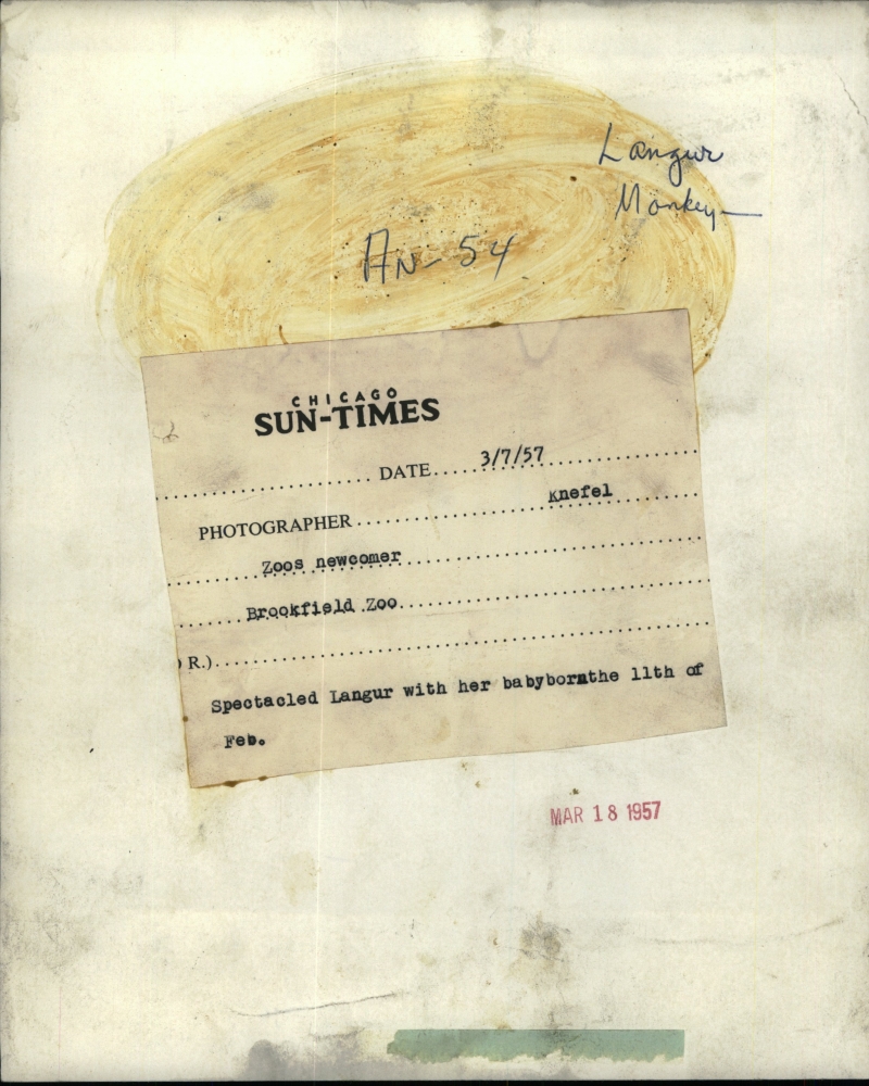 1957 Press Photo spectacled Langur baby Brookfield Zoo