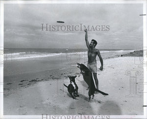 1979 Press Photo Man Fights the Law to Stay on the Beach with his Dogs