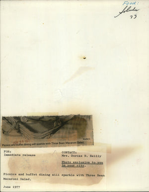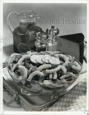 1977 Press Photo Three Bean Macaroni Salad Salt Pepper Cheese Picnic Basket