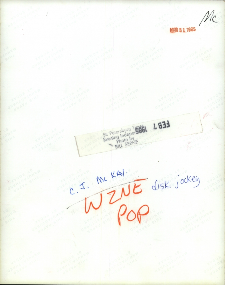 1985 Press Photo Disk Jockey CJ McKay, WZNE Pop - RSJ10683