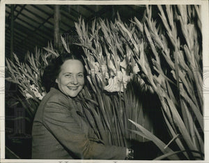1950 Press Photo Mrs Claude Pepper and a bunch of gladiolas - RSJ13939
