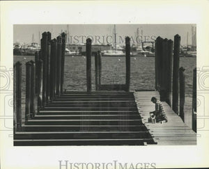 Press Photo Worker paints Marine Cafe new dock, Great Kills - sia04863
