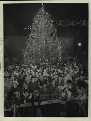 1978 Press Photo Attendees at City Christmas Tree Lighting at Night - sya04251