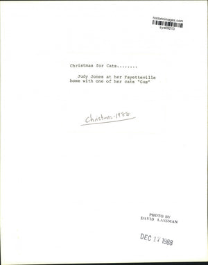Christmas for cats. Judy Jones at her Fayetteville home with one of her cats "Gus". Christmas - 1988.