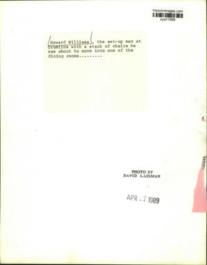 1989 Press Photo Howard Williams, Drumlins Set Up Man in Dining Room with Chairs