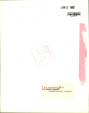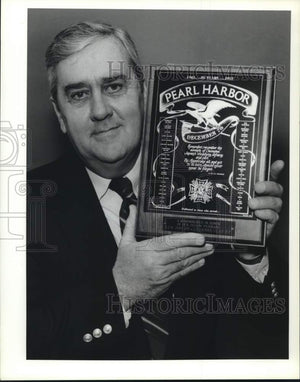 1992 Press Photo Bob Moorshead with Pearl Harbor Commemorative Plaque