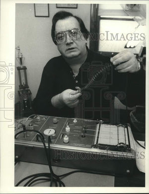 1988 Press Photo W. Malcolm Plummer at Office with Lie Detector Machine