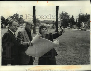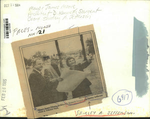 Mayor James Moore, architect D. Kenneth Sargent, coordinator Shirley A. Jefferson. Mayor James Moore, architect E. Kenneth Sargent and Shirley Jefferson stand in Johnson Park. Shirley A. Jefferson.