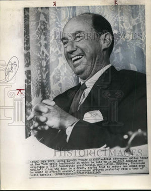 1960 Press Photo New York-No "Draft Evader" Adlai Stevenson at press conference.
