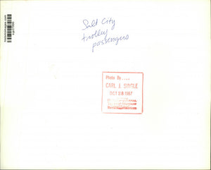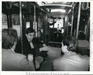1987 Press Photo Passengers Visiting on Salt City Trolley - syp37896