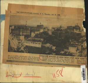 This is a seldom photographed view of downtown Syracuse taken from the roof of the New York Telephone Company building at 210 S. State Street, by Post-Standard photographer Mike Stern. The main traffic arteries visible in the picture are labeled. Eight familiar buildings are numbered. They are: 1. Court House, 2. Hotel ...Syracuse - aerial
