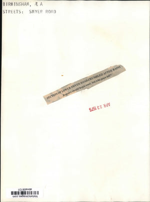 Alabama-Birmingham Streets-A section of lower Smyer Road crumbled after rains..Repairs should begin soon, but who pays bill?