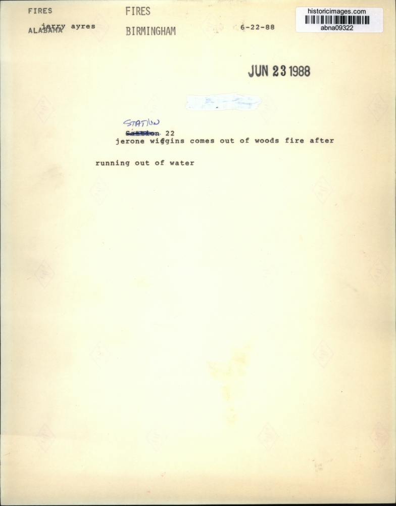 Birmingham, Alabama - Station 22 firefighter Jerone Wiggins comes out of woods fire after running out of water.