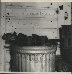 1955 Press Photo Papers and a mop placed in this garbage can, Arson Evidence