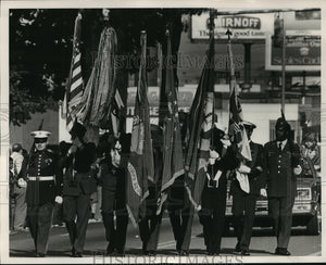 Press Photo Veterans Day Parade Color Guard with Flags - abna17222