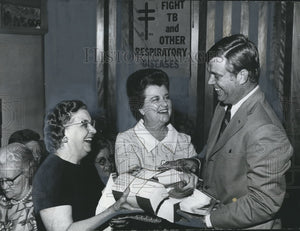 1973 Press Photo Harry Brock with Mrs. J. I. Morgan, Other, Christmas Seal Event