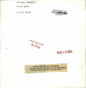 Legal Secretary honored, Douglas Corretti, president of the Birmingham Bar Association, and Mrs. Beatrice Porter. Birmingham Attorney, Alabama