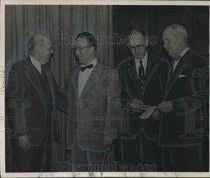 Dean J.E. Hannum, left, Dean of Engineering API Shown at the Auburn Research Foundation's annual conference on patents are, left to right: Dean J.E. Hannum, API school of engineering; J. Robert Johnston, general counsel, Graver Tank & manufacturing Co., East Chicago, III.; Casper W. Ooms, Chicago., Ill., former U.S. commissioner on patients, and Dr. Ralph B. Draughon, API president