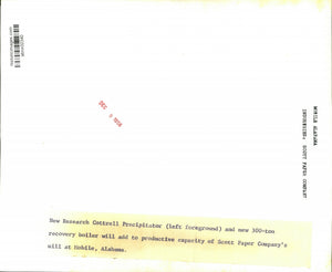Alabama- Industries-Mobile-Scott Paper Mill Company's new research precipitator (left foreground) and new 300 ton recovery boiler will add to productive capacity of Scott Paper Company's mill at Mobile.
