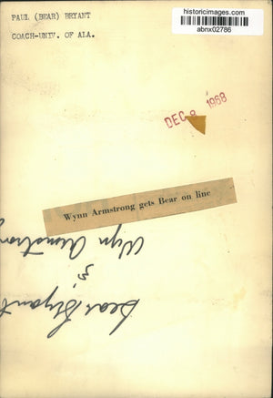 Alabama-University of Alabama Coach Paul (Bear) Bryant- Wynn Armstrong get Bear Bryant on line.