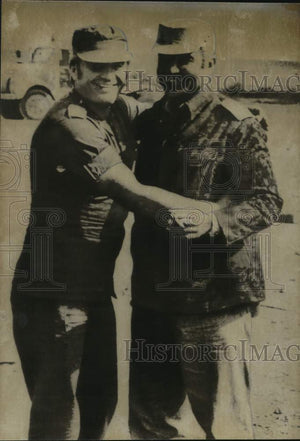 Press Photo Captain Nafatali Shimrad and Colonel Yousef Mekki hug at Checkpoint