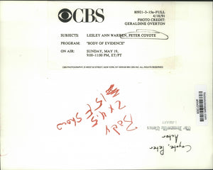 Subjects: Lesley Ann Warren, Peter Coyote; Program: "Body of Evidence"; On Air: Sunday May 19, 9:00-11:00 PM, ET/PT