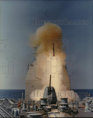 Press Photo USS Bunker Hill fires missile over the ocean - ampa01229