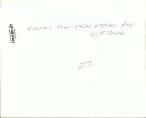 Evening shot from fishing pier, Gulf Shores,Alabama. People walk on beach.