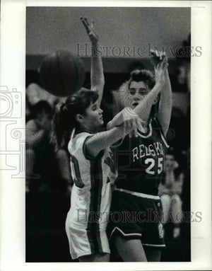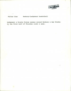 Press Photo Ledgemont's Nicole Fratoe passes around Newbury's Amy Klatka